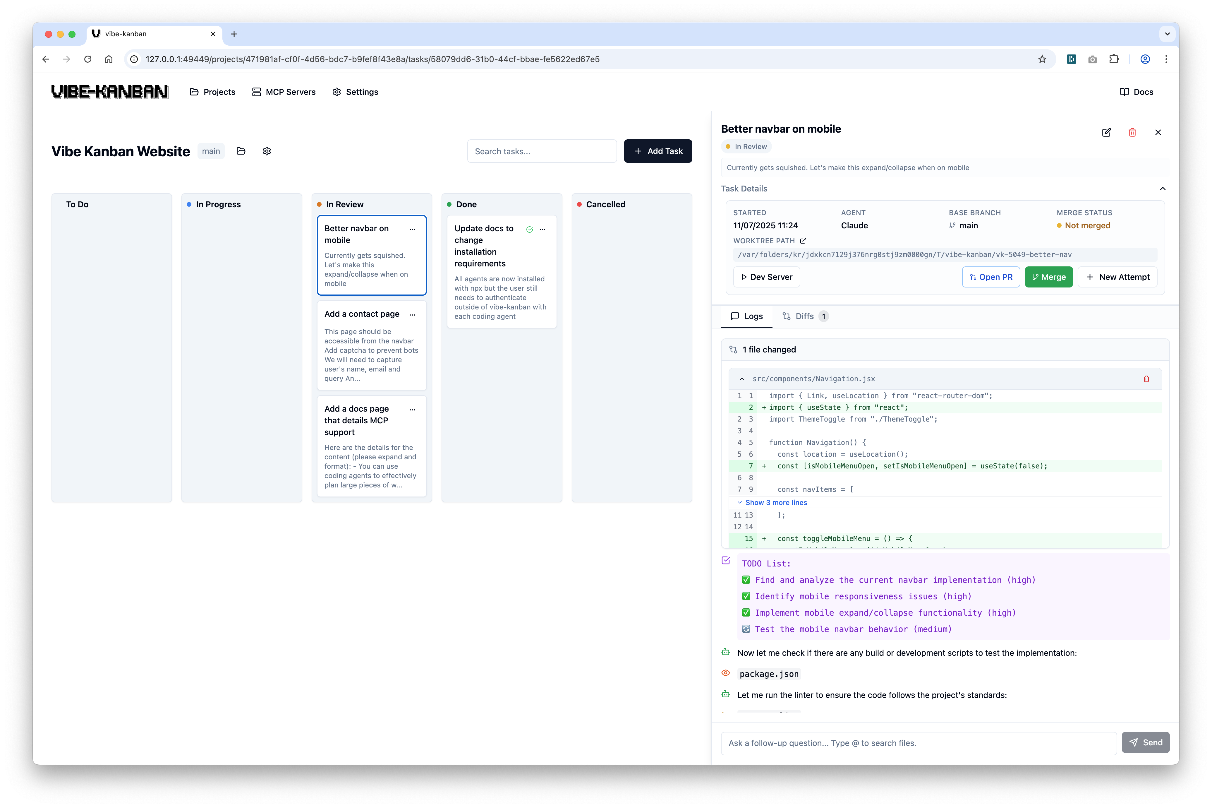 AI coding agents are increasingly writing the world's code and human engineers now spend the majority of their time planning, reviewing, and orchestrating tasks. Vibe Kanban streamlines this process, enabling you to:
